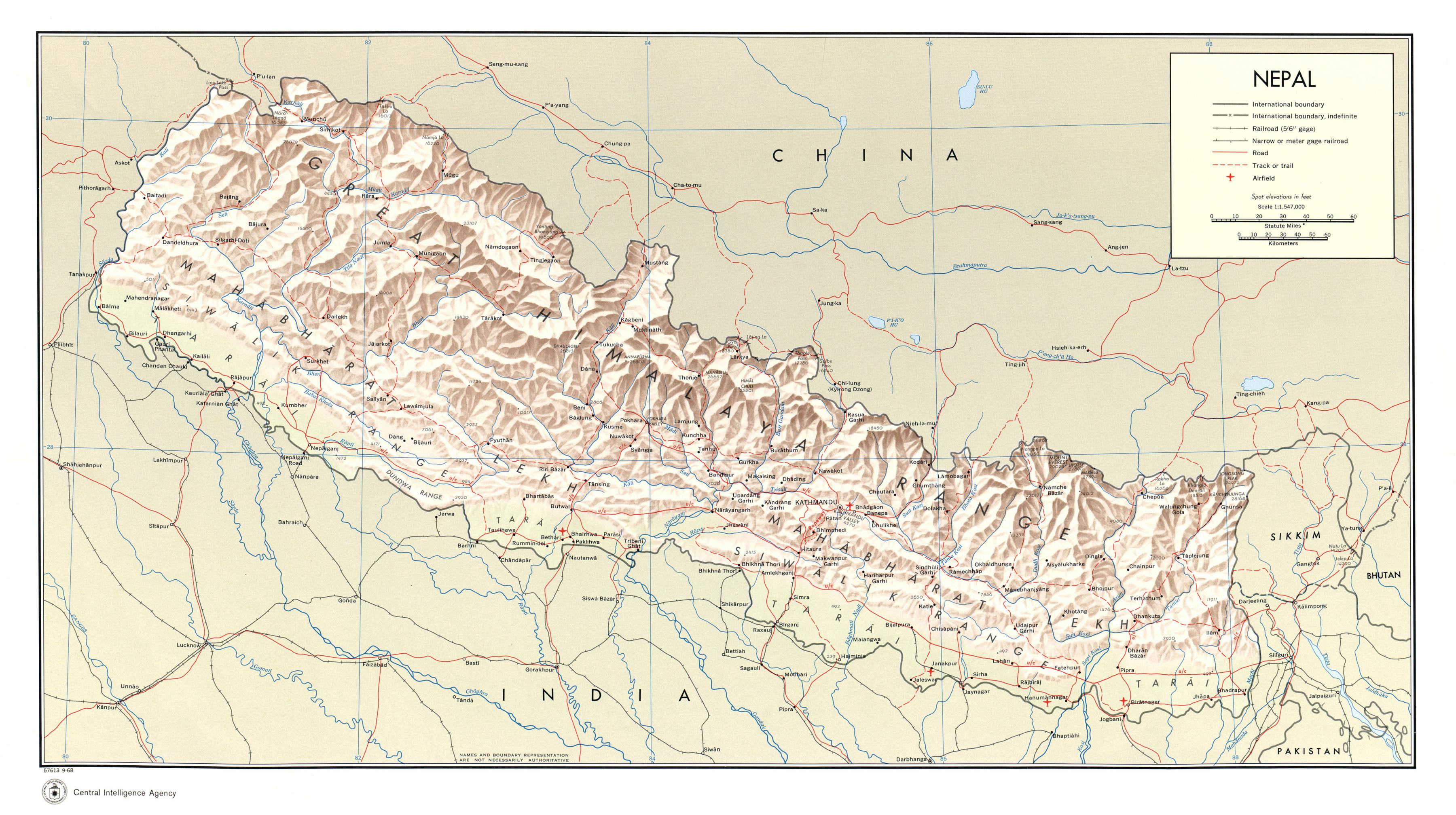 Аэропорты в Непале карте. Непал карта аэропортов (Южная Азия - Азия) для печати. Непал аэропорты карте (Южная Азия - Азия) скачать.